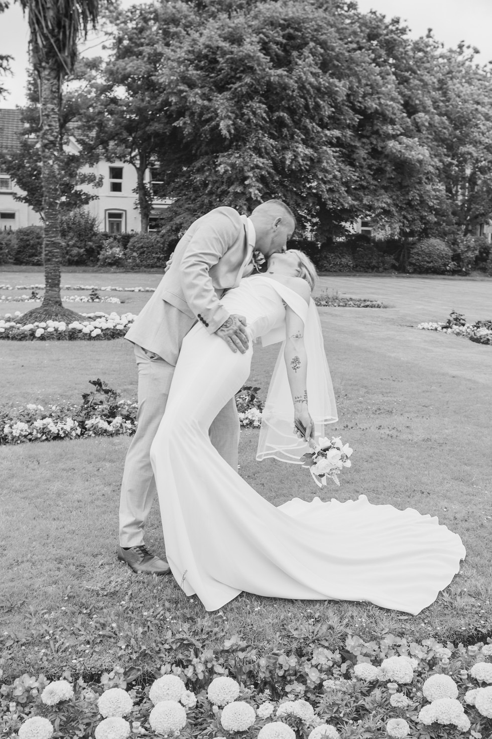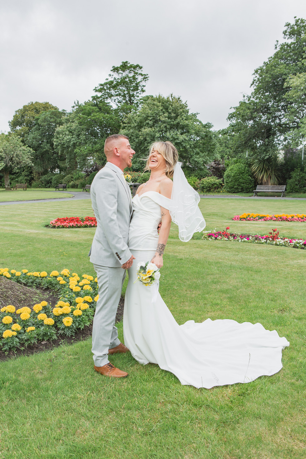 After the ceremony, we had a little wander around the area for some portraits. Llanelli Registry Office is a Grade II listed building and has got some great little spots for photos — a mix of greenery, stone walls, and that classic town-hall charm. We kept things easy and natural — just them being themselves, enjoying their first hour as a married couple with their family.