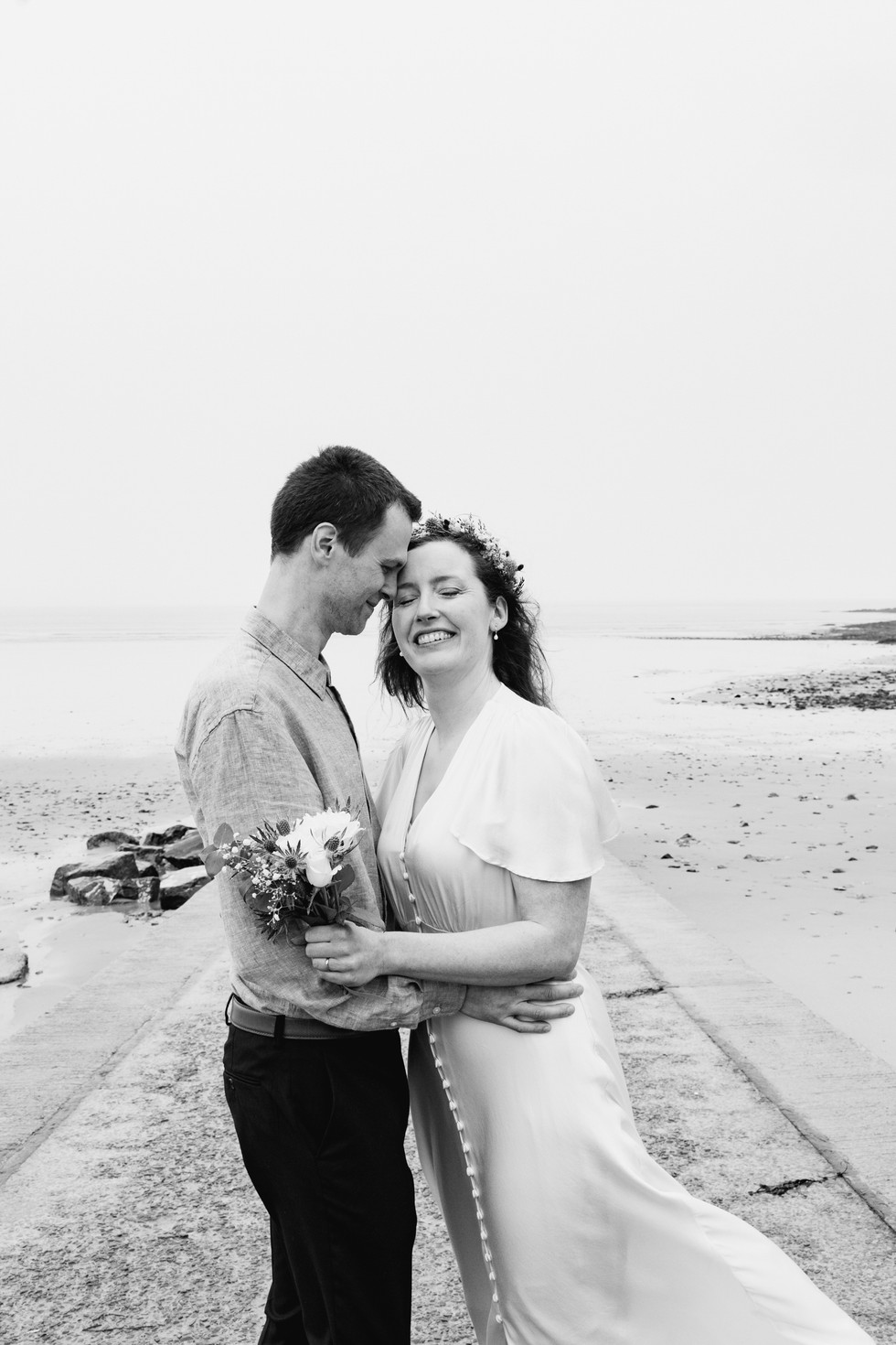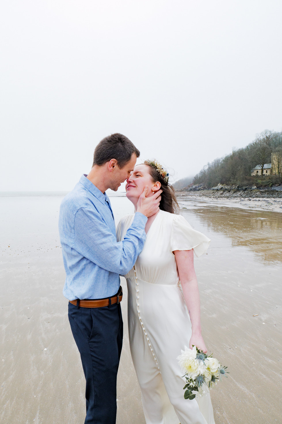 It was absolutely freezing and very windy, the mist was so thick you couldn’t even see where the sea met the sky, and the rain wasn’t letting up. Yet, Frances, looking stunning in her dress, stood there in the elements like it was nothing. That kind of resilience didn’t come as a surprise when I learned that Frances is a former RNLI boat crew member—she’s no stranger to tough conditions! I honestly wonder if her time with the RNLI helped her handle the cold and rain so gracefully! She was an absolute trooper, and it made for some beautifully natural and raw photos.