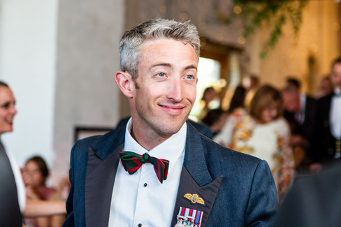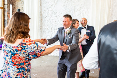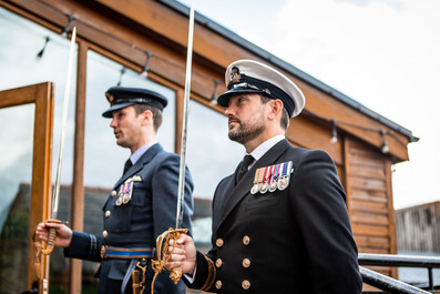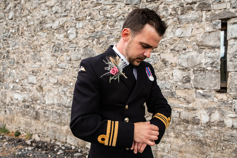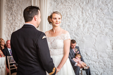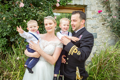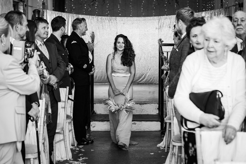 Joy and John had an Officer's wedding at the beautiful and rustic venue of Rosedew Farm which is nestled on the Vale of Glamorgan coast line in the rural village of Llantwit Major. They were married in the Barn at Rosedew Farm where guests were welcomed at the Cwtch bar then took their seats in ceremony room. The Barn, which has the most impressive windows as a wedding ceremony backdrop quickly transforms into the wedding reception room full of warm lighting and rustic charm.